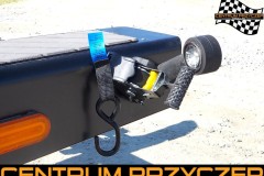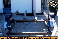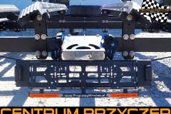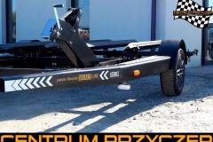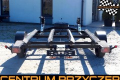 Załadowany pojazd wodny jest umieszczony i zabezpieczony na mocnej aluminiowej ramie. Płozy, wykonane z trwałego materiału, są regulowane w dwóch płaszczyznach, co pozwala na idealne dopasowanie do szerokości przewożonych skuterów. Dodatkowo, przednia belka ramy została zaprojektowana z gumowym odbojnikiem, co minimalizuje ryzyko obicia kadłuba podczas załadunku i transportu.