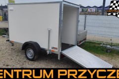Oferujemy na sprzedaż NOWĄ przyczepę jednoosiową, zabudowaną - tupu FURGON / KONTENER z rampą, trapem tylnym TOMPLAN TFD 250.01!