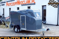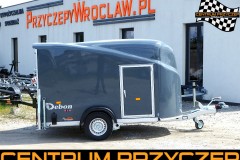 Jako dealer marki DEBON oferujemy na sprzedaż nową przyczepę jednoosiową, hamowaną z zabudową poliestrową oraz drzwiami bocznymi.