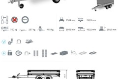 Model PB75-2614/2 to dwuosiowa, niehamowana przyczepa lekka o DMC do 750 kg. Została wyposażona w innowacyjny system hinge remove, który umożliwia prosty demontaż wszystkich burt i słupków, pozwalający uzyskać zupełnie płaską formę platformy. Rama przyczepy jest bardzo sztywna dzięki zastosowaniu spawanego dyszla wraz z dwoma podłużnicami.