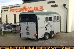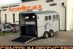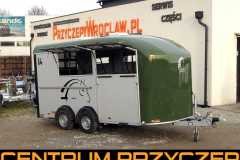 Oferowany egzemplarz jest w kolorze szarym, możliwe jest zamówienie innych kolorów jak granatowy , czy oliwkowo zielony, który jest europejskim trendem w kolorystyce przyczep do transportu koni.